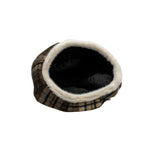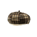 Berretto in lana ,tessuto scozzese toni marrone e beige. Caldo e morbido. Doppiato, foderato e imbottito.