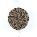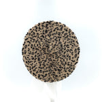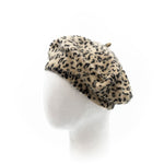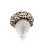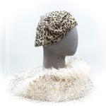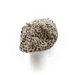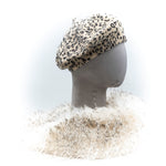 Morbido berretto in lana leggera, con leggero effetto lapin. Fine stampa a macchie tipo maculato su sfondo beige. Elasticizzato.