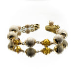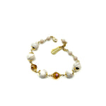 Bracciale con sfere naturali e cristallo. Toni beige e topazio, rifiniture in galvanica oro.