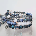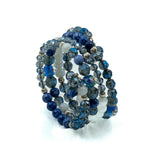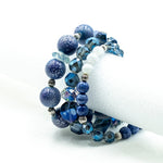 Bracciale a molla con mix di pietre, rondelle e cristalli. Toni del blu e zaffiro. Lavorazione artigianale.