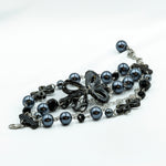 Bracciale multi fili con perle avorio e fiocchi in acetato. Galvanica rodio. Made in Italy.