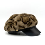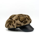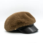 Cappello con visiera invernale, in morbida eco pelliccia.