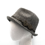 Cappello donna modello "Fedora" in morbida lana, con piccola decorazione color argento a lato e fine bordino intorno alla piccola tesa. Regolabile. Pezzo unico.