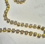Catena strass con 2 griffe a ponticello. Misura PP14 . Metallo ottone . Grezza.