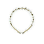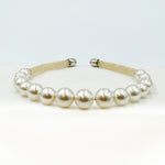 Cerchietto con maxi perle bianche degradè, in fondo tubolare strass avorio tenue, galvanica rodio. Made in Italy.