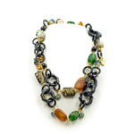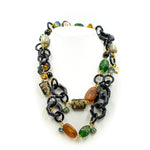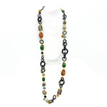 Collana lunga con catene plexi colorate, pietre naturali, cristalli e murrine varie. Galvanica oro. Made in Italy.