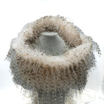 Spettacolare collo in eco pelliccia effetto animalier con sottili frange effetto piume. Morbidissimo. Perfetto in alternativa di una collana sulla maglia, ma anche sopra un cappotto. Un regalo unico e originale. Circonferenza circa 75 cm. Largo 22 cm circa.