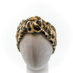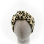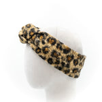 Fascia con nodo in morbido tessuto bouclè stampa maculato, due varianti colore, verde o marrone su sfondo beige. Calda e comoda. Taglia unica, leggermente elasticizzata.