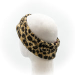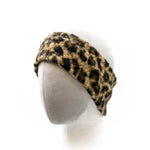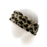 Fascia per capelli, in morbido tessuto bouclè, stampa moda maculato toni marrone o verde militare su sfondo beige. Calda, comoda e pratica. Leggermente elasticizzata, taglia unica.
