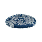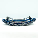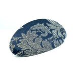 Fermaglio ovale per capelli. Rivestito con elegante tessuto jacquard a sfondo blu.