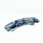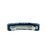 Fermaglio barretta rettangolare. Tessuto jacquard a sfondo blue, chiusura metallo a scatto - matic 8 cm - galvanica rodio. Fatto a mano. Made in Italy.