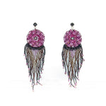 Orecchini con frange di perline colorate. Pietre e cristalli colorati per questi pendenti davvero fashion. Chiusura con perno a lobo. Made in Italy