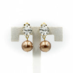 Orecchini con perle e strass cristallo. Chiusura a clip. Dimensione perle 12mm. Galvanica oro. Made in Italy.