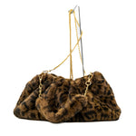 Borsa a tracolla in morbida eco pelliccia, con manico soffice e lunga tracolla in catena metallo, intercambiabili. Chiusura zip. Misure: 38x18x12 cm circa.